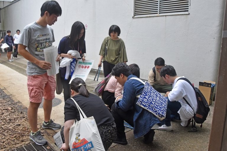 村田貴洋さん(教養学部人間環境学科社会環境課程4年次生)は、「私は普段はタバコを吸っていますが、学内では吸わないと決めています。また、周りの友人も皆携帯灰皿を常備していてポイ捨てはしません。タバコをやめようという気持ちには現時点ではなれないけれど、吸い続けるならマナーはしっかり守るべきだと考えています」とコメント。また非喫煙者の尾形彩奈さん(同)は、「プロジェクトに携わるようになってから、喫煙者の友人に『ポイ捨てはだめだよ』と注意できるようになりました。今回、学内の各所に吸い殻がポイ捨てされているのを見かけたので、マナーを意識してもらえるよう多くの学生に呼びかけていきたい」と語っていました。