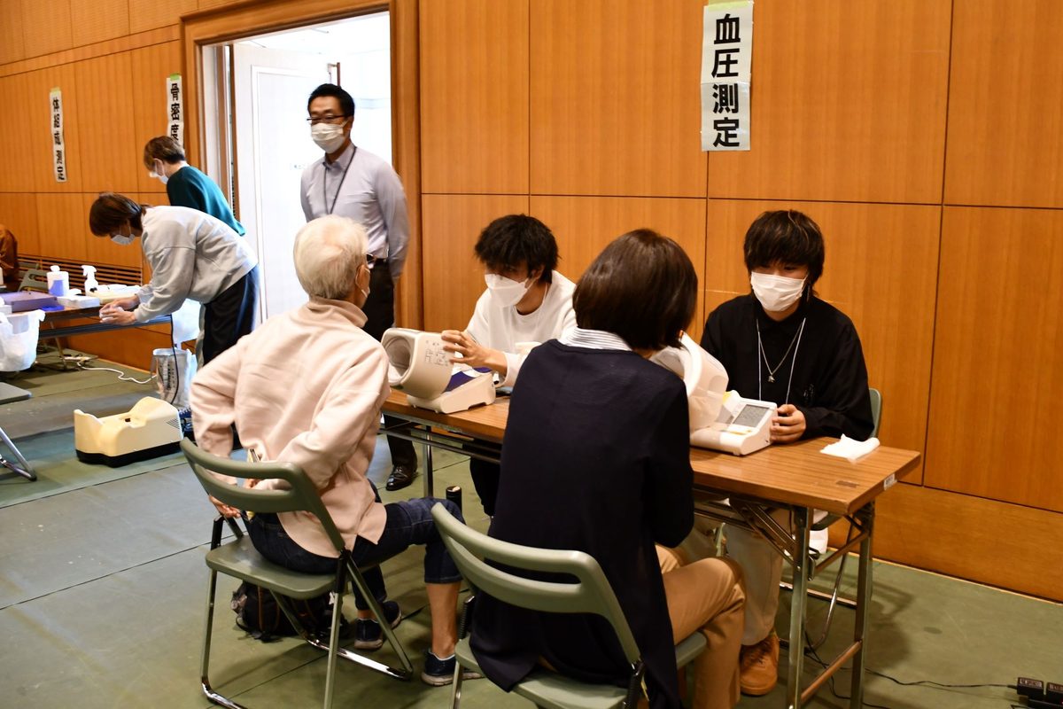健康学部健康マネジメント学科の学生が10月31日と11月4日に、秦野市民を対象とした「健康バス測定会」で、血圧や骨密度などの測定に取り組みました。この測定会は、健康測定機器を積んだバスで公民館などを巡り、地域住民の健診の受診促進や健康意識の啓発などを目指すもので、本学科が同市と連携して展開しています。本学科では授業「フィールドワークA」におけるプログラムの1つとして、今年度は春学期にも3回実施しました。