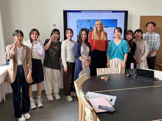 帰国後、研修に参加した学生たちは、9月25日に健康学部の学生や教員に対して報告会を行い、デンマークでウェルビーイングがどのように形成されているか、研修を通しての学びを発表しました。学生たちは、「デンマークではユーザーを中心のまちづくりがなされ、自転車で通勤する人も5割を超えています。環境にやさしいサステナブルな生活を継続することが健康対策の一つにもなっています」「デンマークではまずは家庭医に相談し、重症患者はそこから専門医を紹介してもらう制度です。電子化された医療カルテ、患者や異なる機関の医師間でスムーズに共有され、効率的に医療が提供されています」「デンマークの学生たちが、問題を解決するために発言し行動すること積極的に行うことに影響を受けました。私たちも自分たちの権利を自覚し行動していきたいです」「福祉現場などでは、労働者への負担をできるだけ減らした働き方がなされています。こうした工夫が幸福度の高さにつながっていると強く感じました」と語りました。