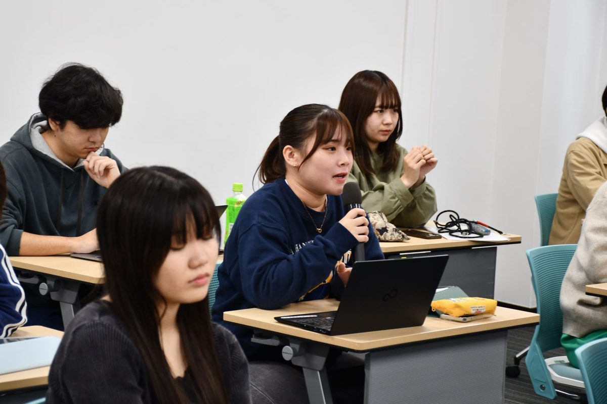 多機能型事業所で実習した学生は、「利用者と興味や関心のレベルで会話するのではなく、質問する目的や意味を考え、相手のペースに合わせて反応を見ながら対話を重ねることが大切だと実感しました。急いで結果を求めすぎるという自分の癖に気付けたことも収穫です」と振り返りました。生活支援センターで実習した学生は、「リカバリーゴール」を作成するための模擬面談に臨んだ体験を報告。「本人の意思を正しく理解した上で伴走者として支援する大切さを学びました。指導者の方からいただいた“車のハンドルを握るのは本人”と言う言葉を忘れず、選択肢を提供するのではなく、その人にとってよりより選択肢を一緒に考えられる精神保健福祉士になりたい」と語りました。各報告後には参加者との間で活発な質疑応答を交わしました。