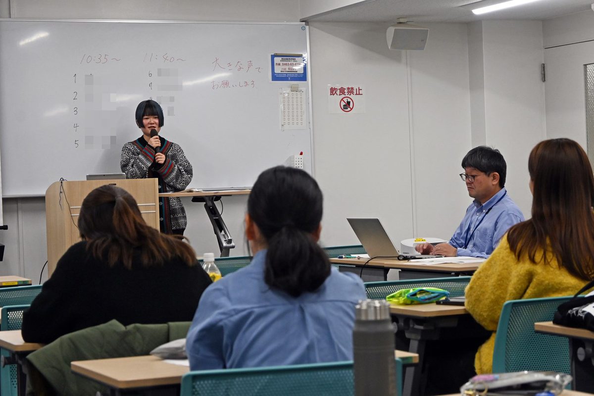 健康学部健康マネジメント学科では10月25日と11月8日に湘南キャンパスで、「2024年度 精神保健ソーシャルワーク実習報告会」を開催しました。精神保健福祉士※の資格取得を目指す4年次生19名が、医療機関と地域(民間の施設)・行政機関などで取り組んだ実習の成果を発表。オンラインも併用し、教員や次年度に実習に臨む3年次生、実習先の指導者らが参加しました。