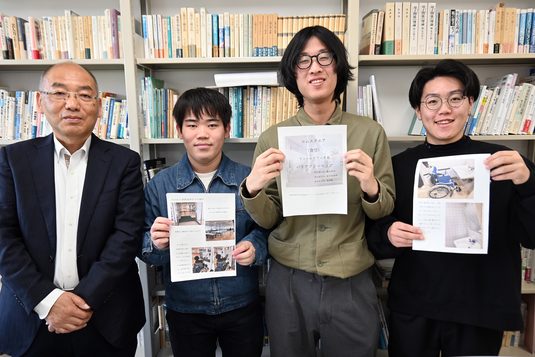 健康学部健康マネジメント学科の学生たちがこのほど、湘南キャンパスにある学生食堂(8号館、コム・スクエア、ログハウス)のバリアフリーマップを制作しました。身近な健康課題の解決を目指す本学科の授業「フィールドワークB」の中で取り組んだもので、佐々田詠哉さん(3年次生)、藤田青空さん(同)、施景航さん(2年次生)が幅60cmの車椅子に乗って調査した成果を写真や感想を交えてまとめました。