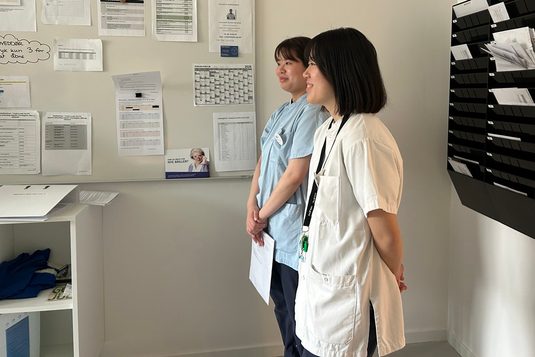 高齢者施設での研修後、学生たちはTUECで、施設案内、訪問受け入れの側面的な準備、買い出しや荷物搬入、資料作成、イベント企画など、運営を支える裏方的な実務にも幅広く携わりました。受け入れを担ったTUECのヤコブ事務長は、「学術センターでは、これまでもコペンハーゲン大学の学生を多数インターンで受け入れてきましたが、今回初めて、東海大学の学生を訪問者(ゲスト)としてではなく、一緒に働くスタッフ・インターンとして受け入れました。あまり目に見えない裏方的な業務をよく担ってもらい助かりました」と述べました。