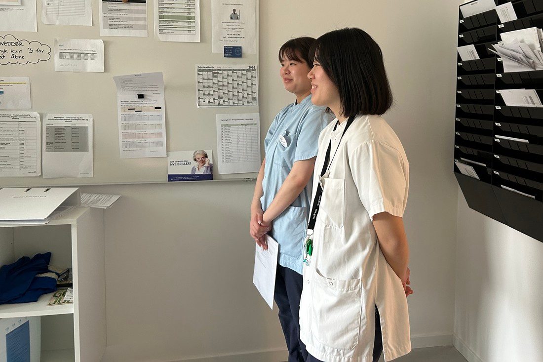 増田紗蘭さん(2年次生)は、「高齢者施設におけるケアは身体的支援だけではなく、入居者の生活環境や人との関わりを大切にすることが重要であると学びました。今回の研修での学びを生かして日本とデンマークの制度・文化の違いなどについて理解を深め、自分自身の将来のキャリアを考えるうえでの参考にしたい」と述べました。また、ニュージーランドでのワーキングホリデーの経験もある道祖春菜さん(4年次生)は、「デンマークでは、細かな指示を待つのではなく、自分で考え、行動すること、主体性や自発的な行動が重要であると気づかされました。こうした姿勢は、多様な価値観や文化の理解、将来、国際的な福祉や他文化チームで働くときに役立つのではないかと感じました」とかたりました。また、奥田夏帆さん(2年次生)は、「デンマークの入居者の方々とジェスチャーも織り交ぜて親しく交流できました。入居者の行動全てに付き添って細かく管理するのではなく、できることは自分で行ってもらい、自由に行動できる環境を整えることの大切さを学びました。また、入居者だけではなく、スタッフ同士のコミュニケーションの取り方やスタッフの休暇の取り方など日本と違う点がたくさんあることを理解できました」と感想を話していました。