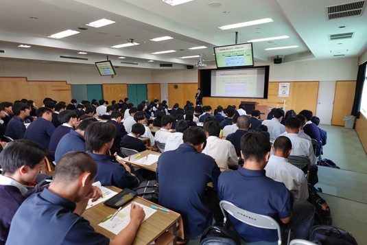人間環境学科の岩本泰教授が10月7日に、神奈川県足柄上郡松田町にある立花学園高等学校で出張講義を行いました。同校が2年生を対象に実施している「探究学習出張講義」の授業の一環で、8つ(教育・環境・福祉・情報・医療・国際・科学・法/経済)の探究分野に分かれ、関東近県の大学から派遣された大学教員が授業を行いました。とりわけ、「環境」の選択希望者は、一番希望者が多く、124人の生徒が参加しました。