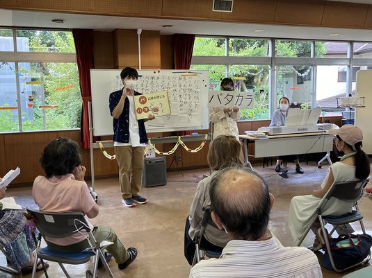 ゼミに所属する大野花鈴さん(4年次生)は、「皆さん笑顔で歌や演奏に取り組んでくれたので、私たちも楽しみながら進行できました。高齢者の方が多い中、今回は小学生の子も参加してくれたので知らない歌があったらどうしようかという不安もありましたが、合唱中にアイコンタクトを取って一緒に手拍子するなど、音楽でコミュニケーションを取ることができました。今後は幅広い年齢層の方々が一緒に楽しめるプログラムづくりも意識していきたい」と話しています。