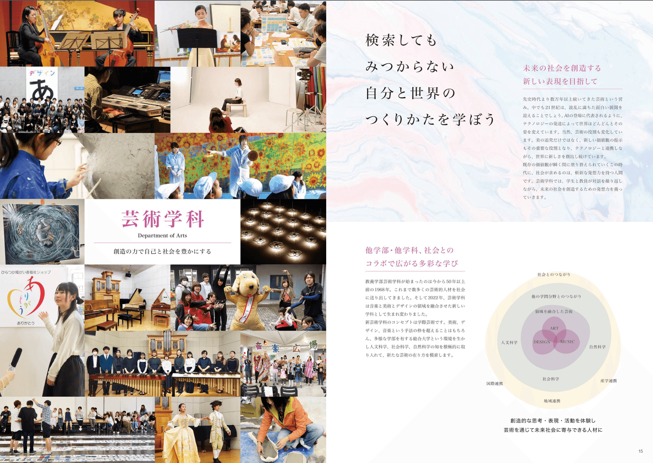 教養学部芸術学科が始まったのは今から50年以上前の1968年。これまで数多くの芸術的人材を社会に送り出してきました。そして2022 年、芸術学科は音楽と美術とデザインの領域を融合させた新しい学科として生まれ変わりました。