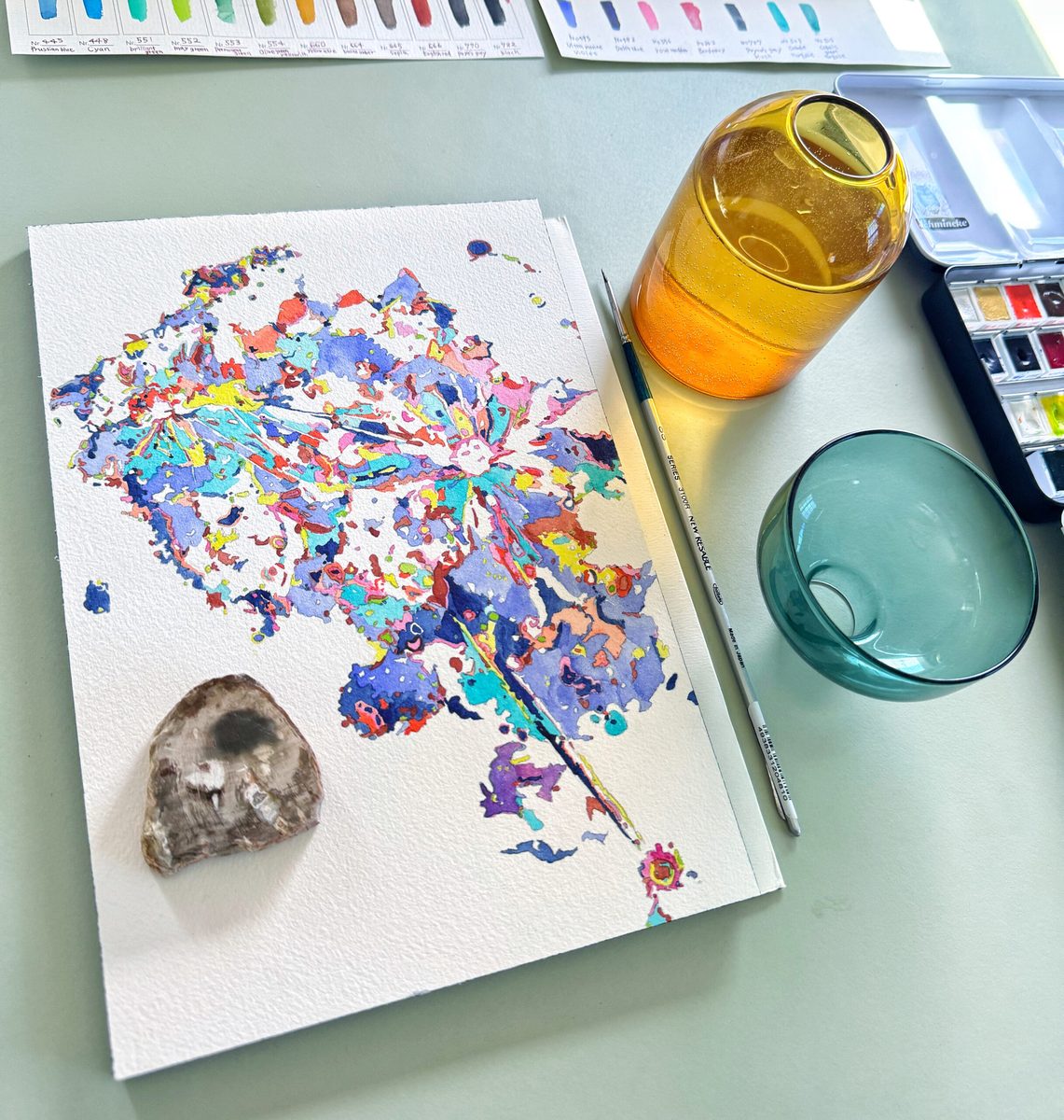 水彩や油絵、岩絵具など、多様な画材を用いて絵画制作を行なっています。作品のテーマは、「絵画と装飾のはざまにあるもの」。国内で展示を行うだけではなく、アラブ首長国連邦やイタリアなどでも展示を行うなど、国際的に活動をしています。