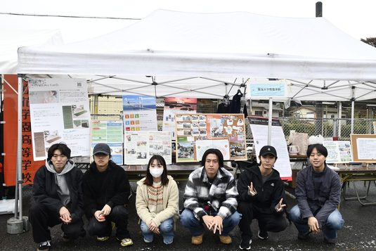 教養学部人間環境学科の岩本泰教授のゼミが11月9日に、神奈川県松田町のJR松田駅北口広場周辺で開かれた「第25回まつだ産業観光まつり」でブースを出店しました。本学部では2019年から岩本ゼミを中心に同町と連携したまちづくりプロジェクトを展開しており、シティープロモーションの考案や名産品を用いた新商品の提案などに取り組んでいます。今回は学部共有科目「プロジェクト研究」の一環で、地域振興や活性化に関連するテーマを中心にそのほかの研究活動紹介を含めた展示を用意し、卒業研究に取り組む4年次生7名が参加。研究内容の紹介や商品販売提案、学部の紹介などを行いました。