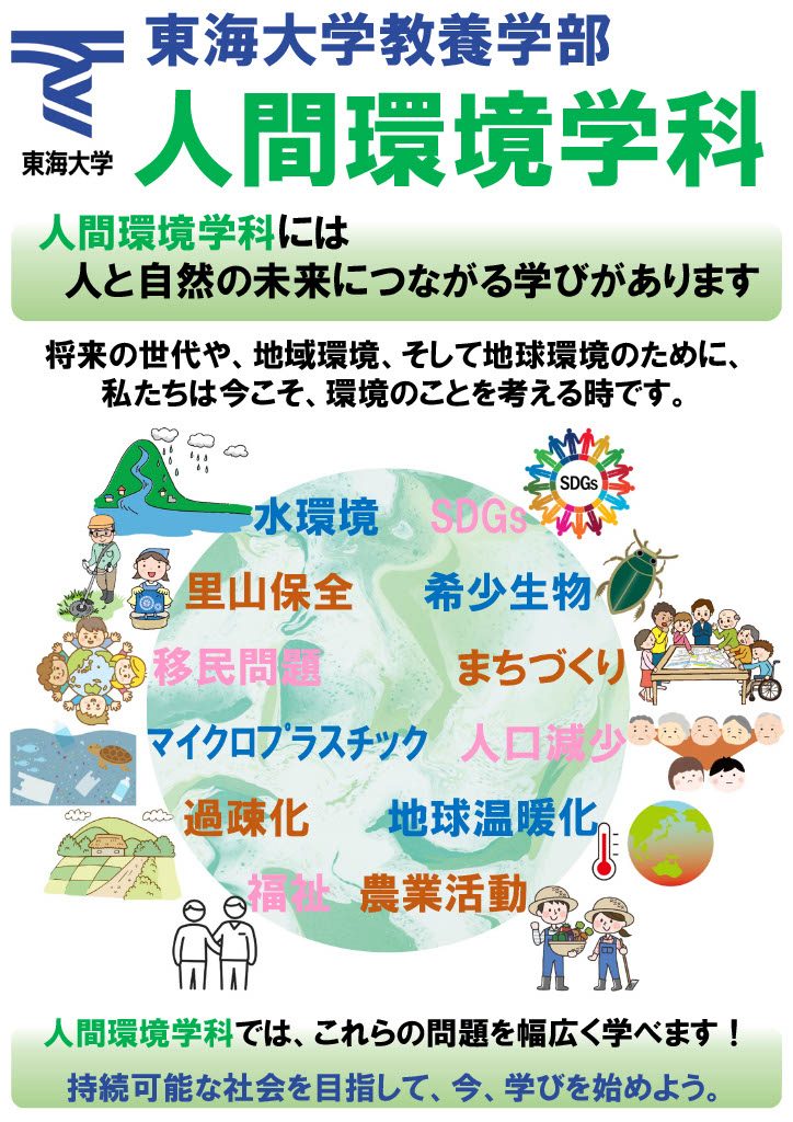 「環境」に関わる文理融合型の教育が行われている人間環境学科では、様々な視点から「環境」について学べます。