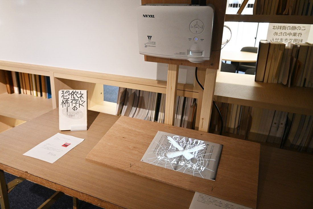 学生に向けた注意喚起として選ばれた一冊は、『ネット依存の恐怖‐ひきこもり・キレる人間をつくるインターネットの落とし穴』(牟田武生著/教育出版)。オンラインゲームをはじめとするインターネットコンテンツに依存し、日常生活に支障をきたしている子どもの実態が紹介されている本書の展示では、「GAME OVER」「ゲームばっかりするなよ!」というメッセージや、人の手がゲーム画面を突き破って出てくる映像が表示されます。星戸萌衣さん(同)は、「書籍の中ではネット依存による悪影響が書かれているので、日ごろネット環境によく触れている学生に読んでもらいたいと思い選びました。かなりインパクトの強い映像になったので、普段本を読まない学生にも興味を持ってもらえたら」と話します。