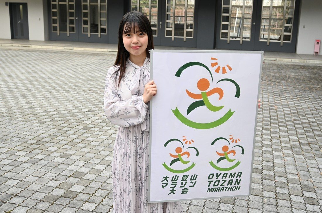 教養学部芸術学科3年次生の高橋叶さんが、3月8日に神奈川県伊勢原市の大山で開催される「大山登山マラソン大会」のロゴマークをデザインしました。今年度で41回目を迎える大会で、今回は伊勢原市制施行55周年記念事業の一環としてロゴマークの制作が決定。例年、同市の祭りのポスター制作などに協力している本学科が依頼を受け、「ラボラトリートライアル(地域連携型アート&デザインプロジェクト)」(指導教員=池村明生教授、熊谷慶助教)を履修する学生10名がデザインを提案し、大会実行員会をはじめとする選定委員会の審査を経て高橋さんの案が採用されました。
