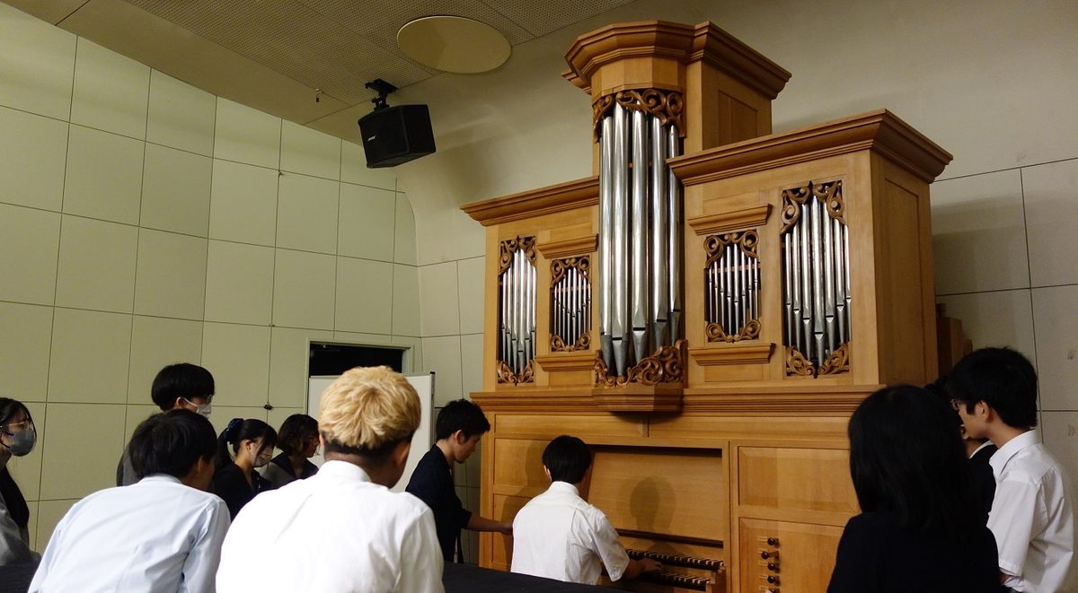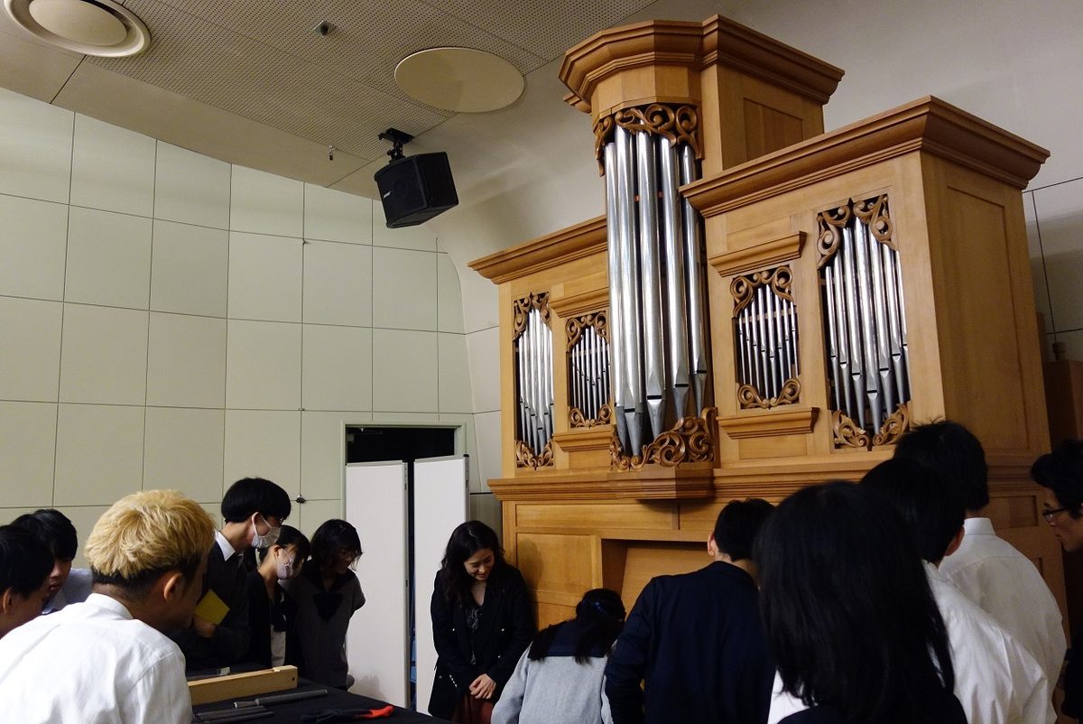 「今回石井さんから詳細を伺うことができたおかげで、パイプ・オルガンにますます興味が湧いてきました。筐体の蓋を閉めた状態と開けた状態とで音の高さが変わってしまうというお話は特に興味深く、物理学的な面白さはいうまでもなく、そうした微細な違いまで計算に入れて作り上げる職人さんの技術に驚きを覚えました。附属高校の生徒さんたちが古楽器に触れるうちにどんどん前のめりになり、最後にはとても盛り上がっていたことも大変印象的でした。」