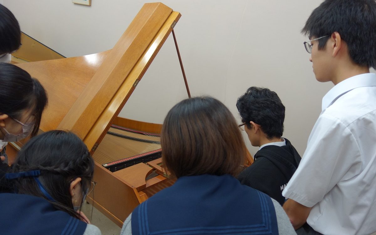 「古楽器の音が出る仕組みや年代ごとの特徴に関して解説を聞き、さらに,実際に古楽器に触れて、弾いて、聴くといった体験ができたことは、生徒にとって大変貴重なものとなりました。自分たちの探究テーマ『クラリネットの音響解析』と関連付けて、パイプ・オルガンの音響解析を行った生徒は、その見たことのない波形に驚いていました。今後、生徒の探究活動での連携に発展させていきたいと思います。」