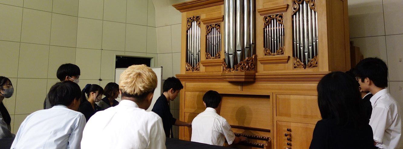 「今回石井さんから詳細を伺うことができたおかげで、パイプ・オルガンにますます興味が湧いてきました。筐体の蓋を閉めた状態と開けた状態とで音の高さが変わってしまうというお話は特に興味深く、物理学的な面白さはいうまでもなく、そうした微細な違いまで計算に入れて作り上げる職人さんの技術に驚きを覚えました。附属高校の生徒さんたちが古楽器に触れるうちにどんどん前のめりになり、最後にはとても盛り上がっていたことも大変印象的でした。」