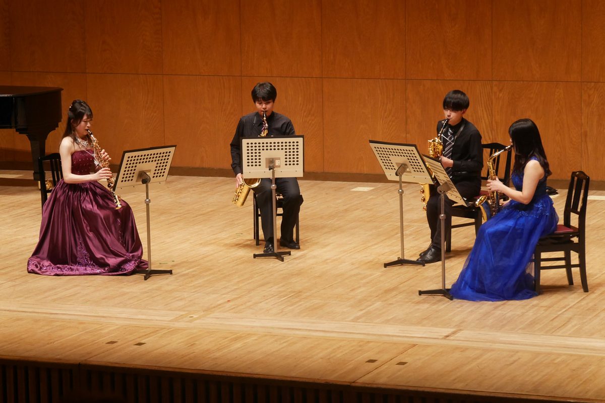 当日は、ヴィオラ・ダ・ガンバの合奏をはじめ、ピアノやサックス、トロンボーン、声楽など学生たちがさまざまな演奏を披露。会場には保護者や友人が来場し、演奏後には毎回盛大な拍手が送られました。声楽専攻の喜屋武沙耶さん(4年次生)は、「入学時に『自分も3年次生になったら演奏会のメンバーに選ばれたい』と目標を掲げていたものの、コロナ禍により発表の機会が次々と失われていってしまいました。感染対策による制限はありますが、こうして無事開催されたことはとてもありがたいことです。準備の段階からみんなうれしそうで、本番でもとても楽しんで歌うことができました」と笑顔で振り返ります。また、「11月の建学祭ではオンデマンド方式で演奏の動画を発表しましたが、やはりお客さまの目の前で披露するのがいちばん。舞台に立てたことで、もう一歩成長できたと感じました」と語りました。