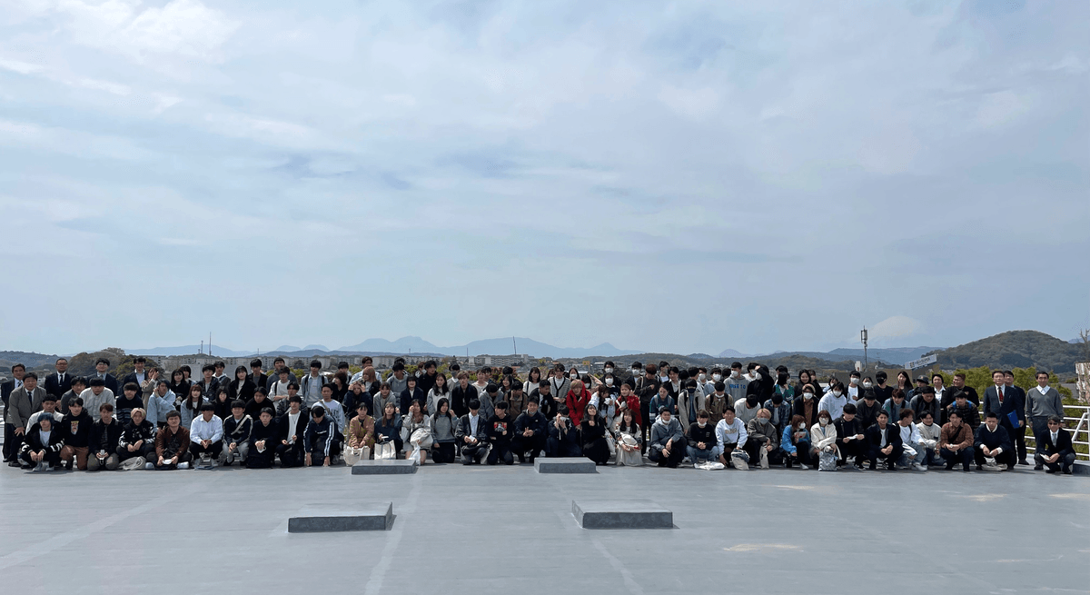 教養学部人間環境学科には、117名が入学しました。新入生ガイダンスが4月5日に行われ、新入生と人間環境学科の教員が対面をしました。カレッジオフィス職員と学科教員によるガイダンスが行われ、大学での授業の履修方法や学生生活の中で注意すべきことなどを学びました。最後に1号館の屋上に上がって記念撮影をしました。