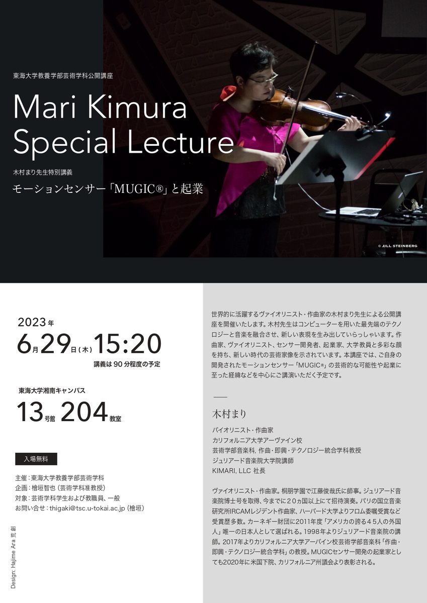 世界的に活躍するヴァイオリニスト・作曲家の木村まり先生による公開講座を開催いたします。