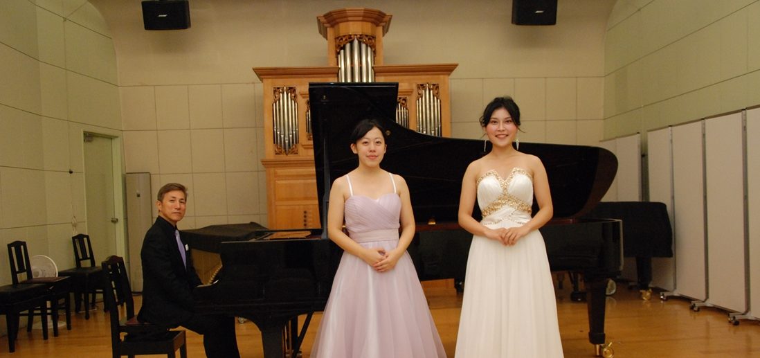大学院芸術学研究科音響芸術専攻の大学院生による「Joint Concert」を、9月28日に湘南キャンパス10号館のスタジオ・ソナーレで行いました。本専攻演奏分野の実技課程修了演奏会として実施する単独リサイタルのリハーサルを兼ねて、毎年開催しているものです。今回はこの秋に修了したピアノの松ヶ野嵯和子さんと、3月に修了を控えるソプラノの関萌子さんが演奏を披露。学生や地域住民ら約30名が来場しました。