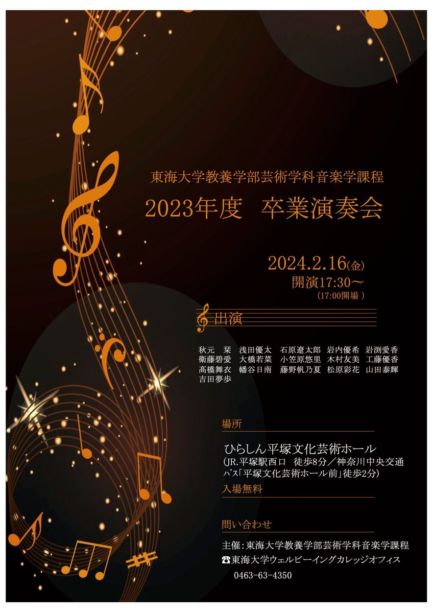 2024年2月16日(金) に教養学部芸術学科音楽学課程の卒業演奏会が開催されます。