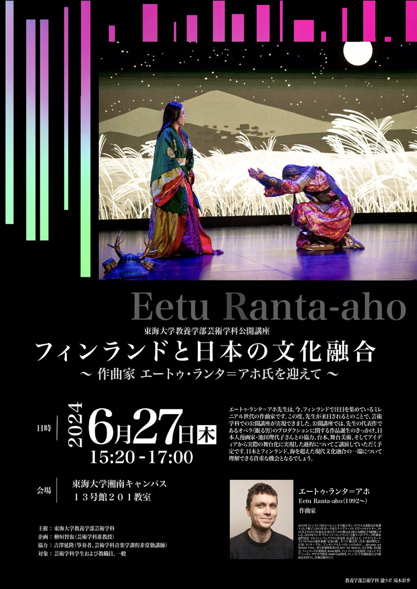 東海大学教養学部芸術学科公開講座 エートゥ・ランタ=アホ氏特別講演を開催します