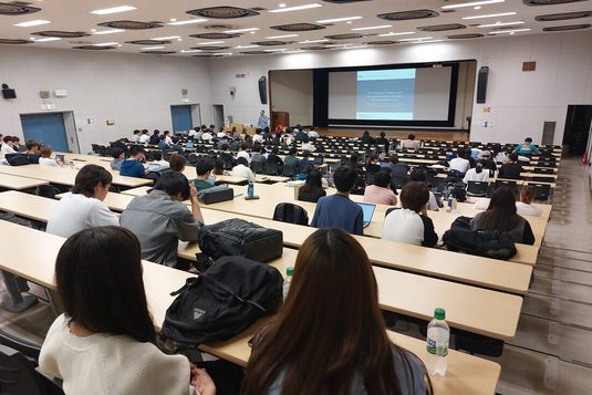 23日には、アパレルブランドの取り組みに焦点を当て、「テキスタイルエクスチェンジ」が年に1回開催する国際会議「サステナブルカンファレンス」について紹介。「日本からは旭化成、ファーストリテイリング、M.S.I.などが参加しています」と説明し、学生が日ごろから商品を購入しているいくつかのアパレルブランドを例に挙げ、環境保全活動や労働者の人権保護、フェアトレード、服の修繕など各社が展開するサステナブルな取り組みを解説しました。また、こうした取り組みが遅れている企業の実態例にも触れ、「洋服を買うためにお金を支払うのは選挙と同じです。消費者の皆さんは企業にサステナブルな取り組みを行うよう意見を言う権利があります。こうした意識を持つためには教育がとても重要であり、皆さんがこの状況を変える立場になるかもしれません」と語りました。聴講した学生からは、「ファッションを通じて社会貢献ができることを学び、啓発されました。自分1人の行動でも積み重ねれば大きな変化を生む可能性があると感じました」「ファッションと環境の関係性についての知識がなかったので、この業界の先駆者である稲垣さんの講義を受けとても勉強になりました」といった感想が聞かれました。