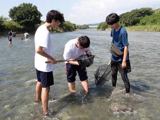 参加した生徒たちは、「よく観察すると、種ごとに形態の特徴に個性があることが分かり、また同じ川の生き物でも種によって棲んでいる場所が異なり興味深かった」「短い時間でしたが、たくさんの生き物を見つけられました。観察できた多くの生き物が子どものときには一度海で生活することなどを知れてよかった」「大学生のお兄さんお姉さんからいろいろな話を聞けたので、進学に向けての参考になりました」と笑顔で話していました。