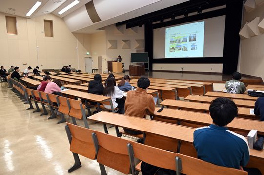 今回は、来年5月と11月に計画している「猫の島サミット」(仮称)に向けた準備会議として、初めにコワーキングスペース「sea glass」で中間報告会を行い、ねこだんごのメンバーや木之内均熊本キャンパス長、地域住民や関係者ら約30名が参加しました。前田教授が活動を始めた経緯や、動物看護師らの協力を得て行った身体測定の様子、観光客への聞き取り調査の結果を報告するとともに、村上教授とゼミ生たちが制作したオリジナルサイトも紹介。「地域おこし協力隊の林愛子さんを中心に、湯島の猫たちは出生日や名前、ワクチン接種の有無などがきちんと管理されており、他の“猫の島”のモデルになり得ると考えています。サミットでは全国の猫の島から保護団体の代表者や地域ねこを世話している大学サークルなども招いて、離島振興や動物観光について話し合い、交流を図りたい」と話しました。その後は参加者も交え、湯島の現状や新たな観光資源などについて意見交換しました。