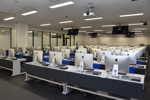 高輪キャンパス1号館地下2階の改修工事を実施し、情報通信学部の各学科で使用する実験室がリニューアルしました。2018年度で開設10周年を迎えた情報通信学部では、今回のリニューアルは、より最先端の技術を学ぶことができる教育研究環境の整備を目的としたものです。情報メディア学科、組込みソフトウェア工学科、通信ネットワーク工学科の実験室は今年度の春学期の授業から使用されており、経営システム工学科の実験室も今年度中の完成を予定しています。