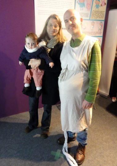 MommyTummyは、妊娠から臨月までの妊娠過程を疑似体験できるシステム。温水を腹部の水袋に徐々に注入することで胎児の重さと温かさを呈示するほか、内部にある46個のバルーンを膨らますことで胎動も感じることができます。実際の妊娠では、着床から臨月まで約9カ月がかかるところ、MommyTummyでは約2分で臨月までシュミレーションでき、徐々に腹部と胸が大きくなり、2分のシミュレーション後には胎児とのインタラクティブパートとして、激しく動くと胎児が怒り、やさしく腹部をなでると機嫌がよくなる機能も用意。落としたものを拾う、または寝た状態から起き上がる、椅子から立ち上がるなどの行為を通じて胎児とのコミュニケーションも体験できるようになっています。