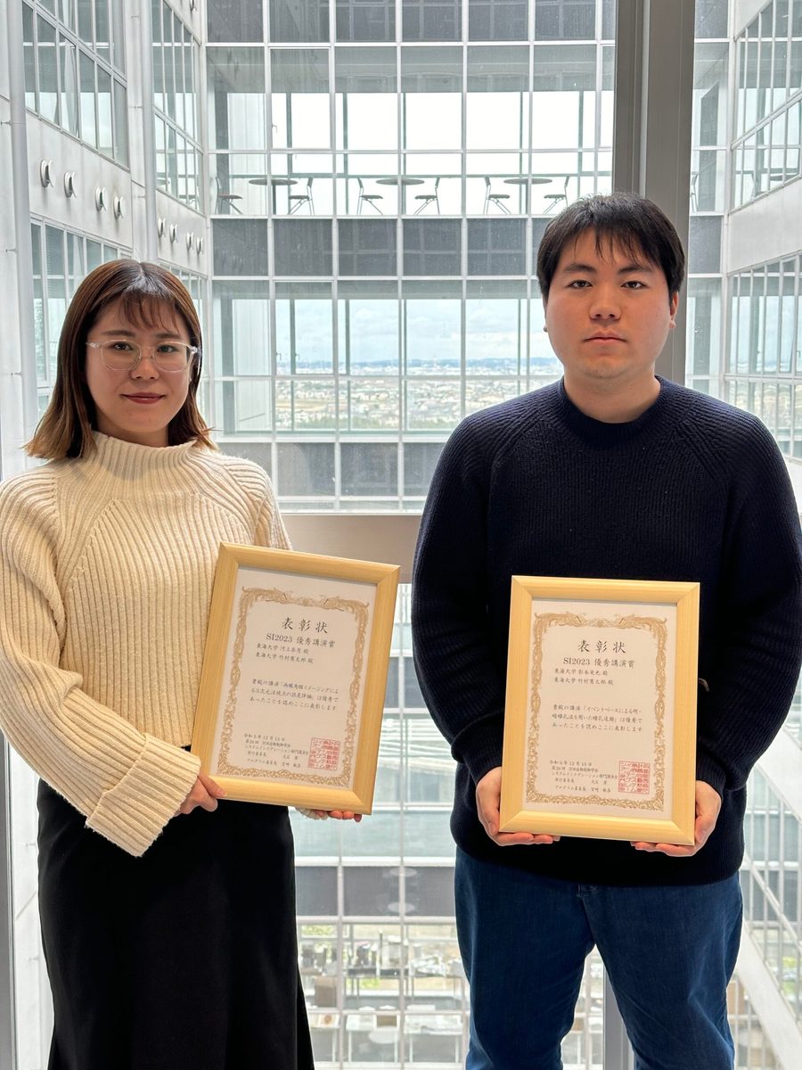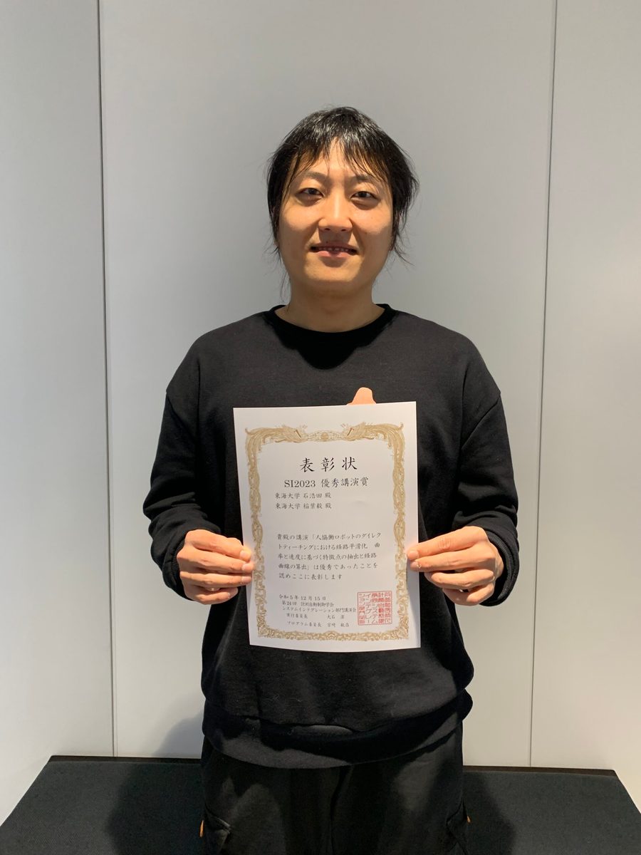 2023年12月14〜16日に新潟・朱鷺メッセにて開催された第24回計測自動制御学会システムインテグレーション部門講演会(SI2023) にて、稲葉研究室の石浩田さんと、竹村研究室の河上奈月さん、影本竜也さんが発表を行い、それぞれ優秀講演賞を受賞しました。