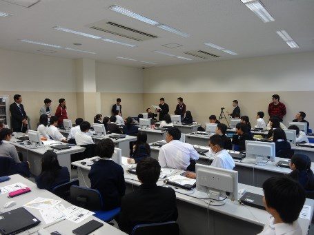 情報理工学部情報科学科・内田理教授の研究グループが、11月7日に神奈川県立西湘高等学校で、また11月17日に神奈川県立横須賀大津高等学校で、防災ワークショップを実施しました。これは神奈川県の「平成28年度大学発・政策提案制度」に採択された提案に基づき、県と共同で実施している「ICT活用型防災教育プログラム作成事業」の一環で行ったものです。同事業は、ICT活用型若年層向け防災教育プログラム「かながわ防災教育プログラム2018(仮称)」の策定を目標としており、平成29年度は内田教授のグループが開発した災害情報共有アプリDITS(Disaster Information Tweeting System)を使ったワークショプを県内の中学・高校5校で実施する計画を進めています。