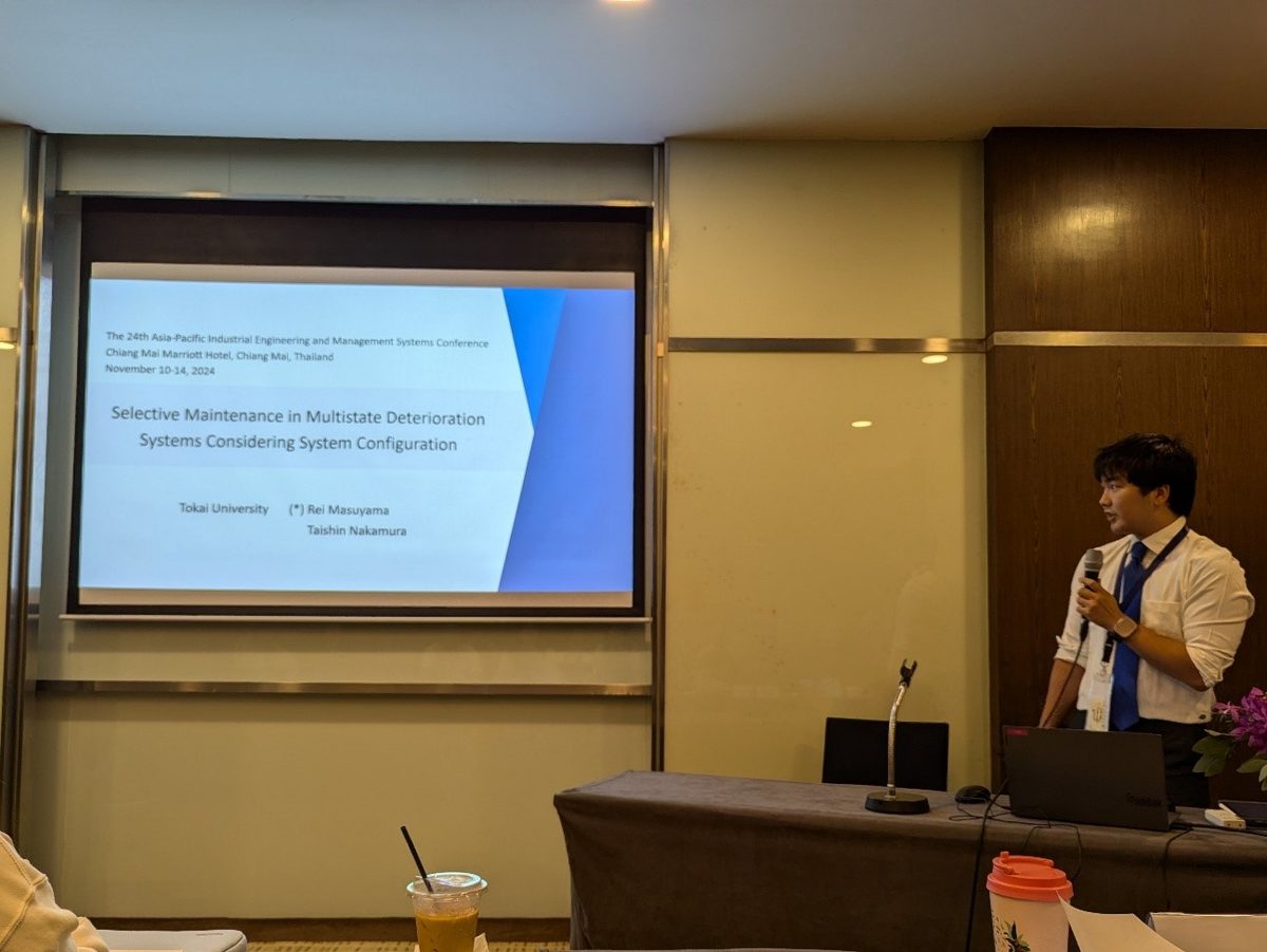 2024年11月10〜14日にタイ・チェンマイで開催された国際会議 “The 24th Asia-Pacific Industrial Engineering and Management Systems Conference” で増山さんが研究発表を行いました。