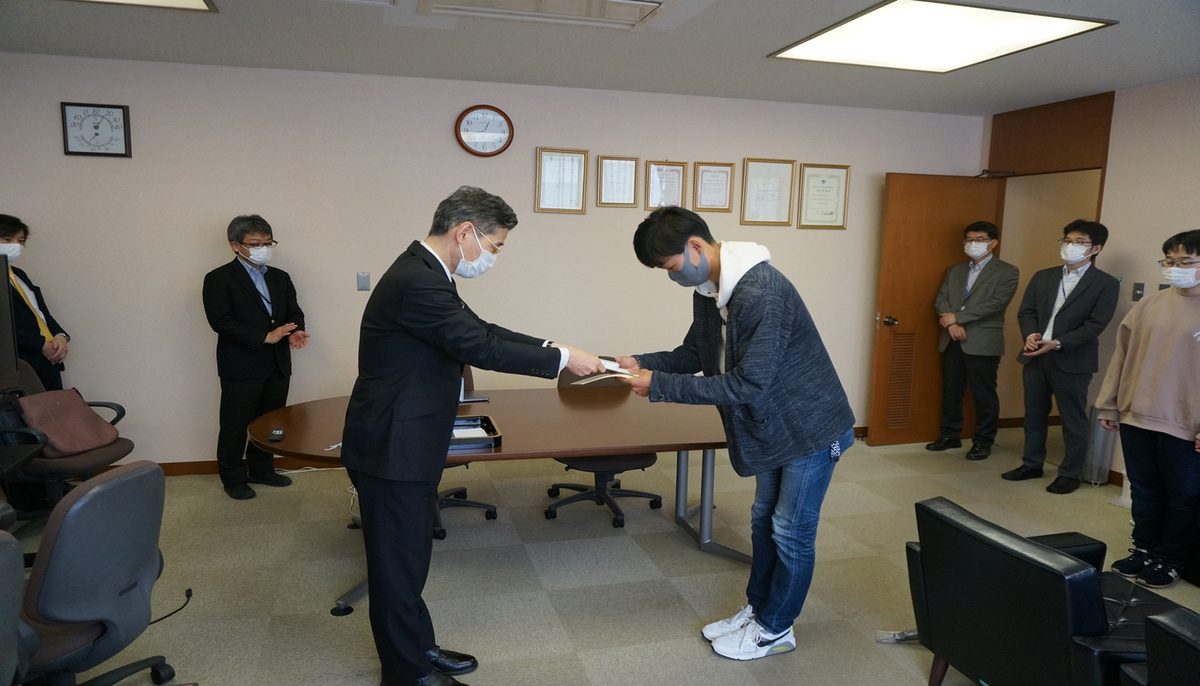 情報理工学部では、4月29日に学園基礎学力定着度試験と高大連携総合試験の優秀者を表彰しました。本学部では、学生たちの勉学に対するモチベーション向上を図るべく、付属高校から本学部に推薦入試で進学した学生のうち、各校で3年時の秋に実施された学園基礎学力定着度試験と高大連携総合試験で優秀な成績を修めた学生を毎年表彰しています。