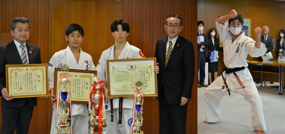 11月15日には山田学長と網野札幌キャンパス長に優勝を報告。その後、札幌市の石川副市長に表敬訪問しました。表敬訪問では副市長や札幌市役所職員の方々の前で「突き」や「蹴り」といった空手の型を披露しました。