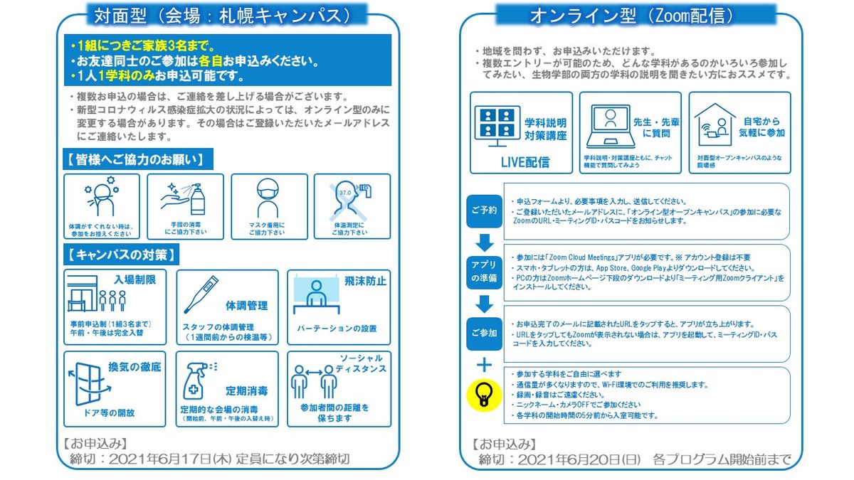 ・【東海大学札幌キャンパスの対策】【皆様へご協力のお願い】をご理解いただき、お申込みください。