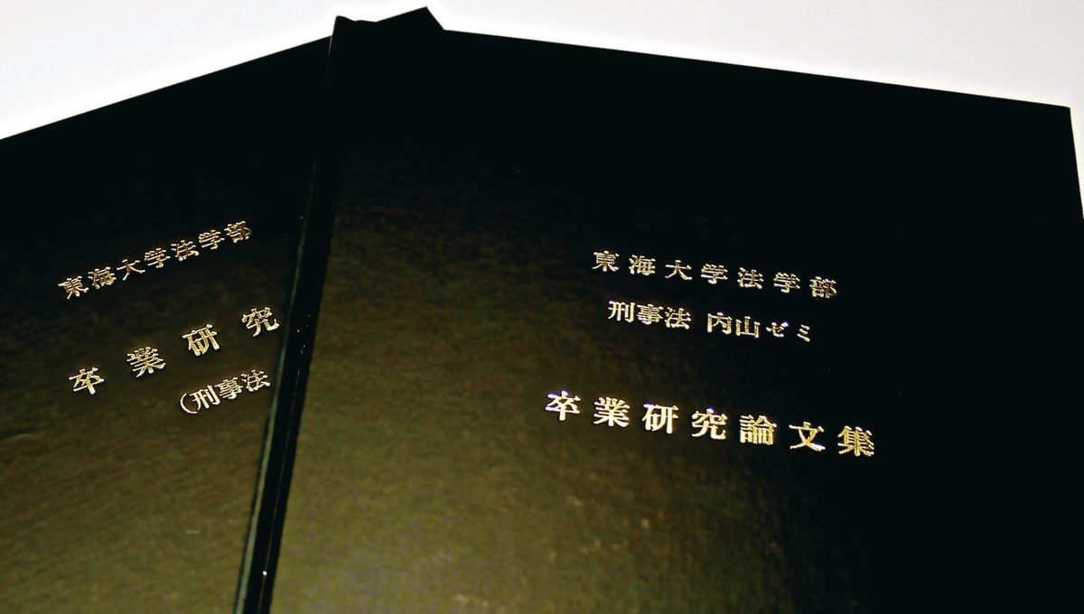 3年次に引き続き、より専門性の高い法律分野の学習を続けます。法学部では、卒業論文・卒業研究は必須ではありませんが、多くの学生が「専門ゼミ(演習3・4)」で卒業研究に取り組んでいます。その成果はゼミごとに製本され、卒業式の際にゼミの担当教員から手渡されます。