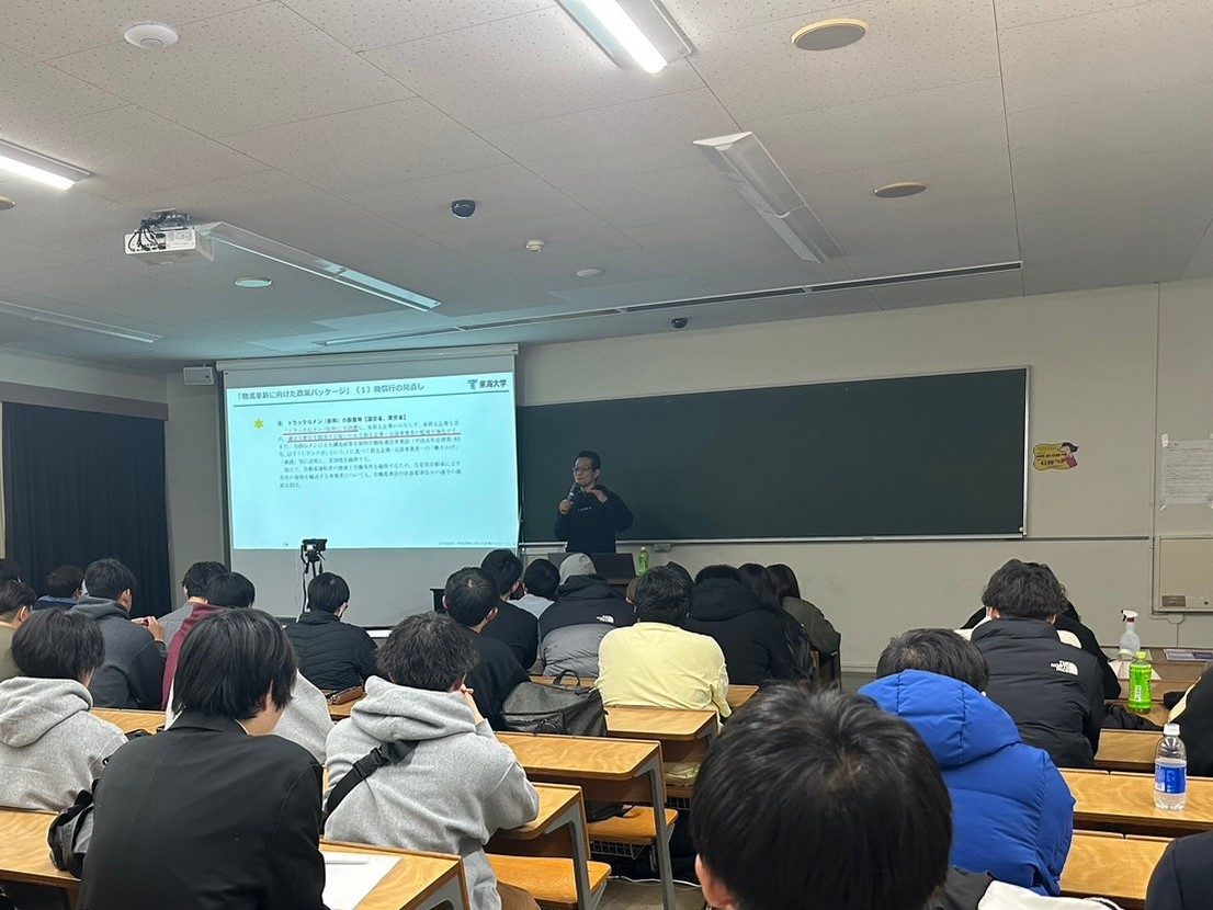 法学部法律学科では1月11日に湘南校舎で、株式会社エニキャリによる特別講義「考えよう、物流2024年問題」を開催しました。