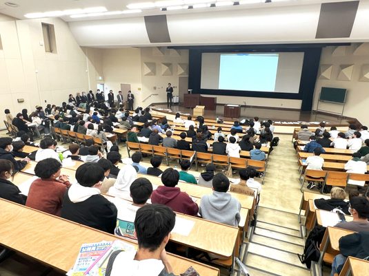 2024年4月3日に2024年度新入生研修会が行われ、法学部の新入生333人が参加しました。東海大学では全新入生を対象とした入学式がない中で、学部新入生全員が集まる初めての場でした。当日は、11-401教室で、15時15分から始まり、冒頭唐津恵一学部長から、新入生に対する挨拶がありました。挨拶で、唐津学部長は、自由度が高くなる大学生活で、将来の自己のキャリア形成を視野に、いかに自由な時間を悔いのないように使うかが大切であることを語りました。その後、各教員が自己紹介を行った後、指導教員ごとにわかれて、各指導教員と新入生との対話が行われました。将来のキャリアについて、高い目標を持つ新入生がいる中で、内藤悟准教授が挨拶の中で、公務員について言及しましたが、法学部としても、学生のキャリア支援を早い段階から行っていきます。新入生のみなさん、悔いのない大学生活を送ってください。