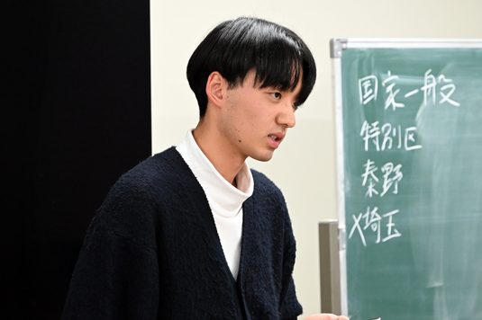 それぞれの話の後には質疑応答を実施し、「最初に受けた模試ではどの程度の点数が取れましたか?」「公務員試験対策の予備校にも通った方がいいでしょうか?」といった質問が上がり、終了後にも熱心に個別に話しかける姿が多く見られました。企画した内藤悟准教授は、「公務員を志望する2年次生は年明けからいよいよ本格的に準備を進めていく時期に当たります。この報告会をさらに一歩踏み出すきっかけにしてもらいたい。今日の話を参考に、学生生活の中に試験対策を取り入れてください」と語りました。
