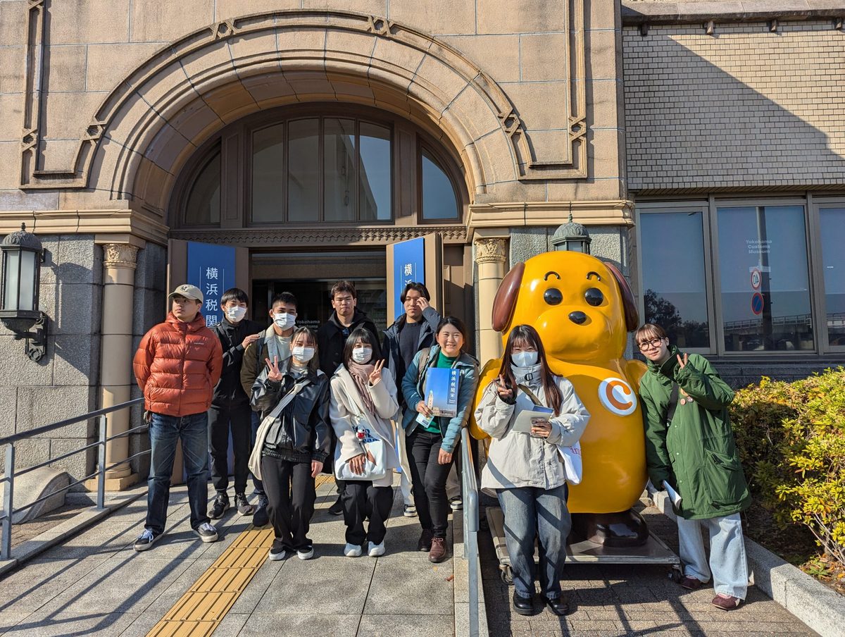 2025年1月15日、法学部法律学科山中ゼミの3年次生11名が、横浜地方裁判所で開かれている裁判員裁判の傍聴及び横浜税関資料展示室の見学を行いました。秋学期に開講された「演習2 」(3年次生ゼミ)では、ゼミ生同士が伸ばしたい力を話し合い、様々なテーマで法律ディベートを実施し、法的根拠を挙げて説得的に意見を述べる力を養いました。その中でも、「裁判員裁判制度の賛否」については、時間をかけて議論しました。その際、秋学期はじめに同ゼミで裁判員裁判(2024年10月16日、横浜地裁小田原支部にて開かれた傷害致死事件の裁判)を実際に傍聴して感じたことが話題にのぼることが多く、自分の目で見て耳で聞いて確認する実践の大切さも学びました。