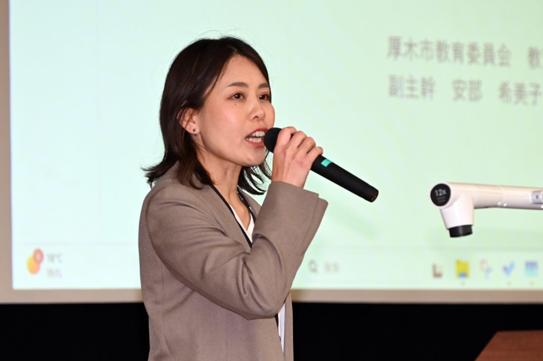 初めに、地方自治法の授業を担当する内藤悟教授が、地方公共団体が持つ建物や施設など行政による財産管理、指定管理者制度などに関する事前講義を行いました。続いて厚木市教育委員会教育部学校施設課の安部希美子副主幹が登壇し、「厚木市の仕事について」をテーマに講演。初めに福祉部や財務部、市街地整備部などで財産管理や行政評価、広域連携に携わってきた自らの経歴を紹介するとともに、厚木市を構成する組織について解説し、「3年から5年程度で異動があり、さまざまな仕事に携わることができます。公務員を目指す学生の皆さんは参考にしてください」と呼びかけました。続いて、市の人口や厚木市の特徴、厚木市の公共施設について現状を紹介するとともに、学校施設の老朽化と修繕といった課題への対策、公共施設の運営方針などを策定する厚木市公共施設最適化基本計画の概要を説明し、「公共施設の建て替えや改修工事を行う際には、設計、建設、維持管理、運営に民間の資金、経営能力及び技術的能力を活用して行う手法であるPFI(Private Finance Initiative)を採用し、民間事業者の技術やノウハウを活用しています」と語り、具体的な事例について紹介しました。
