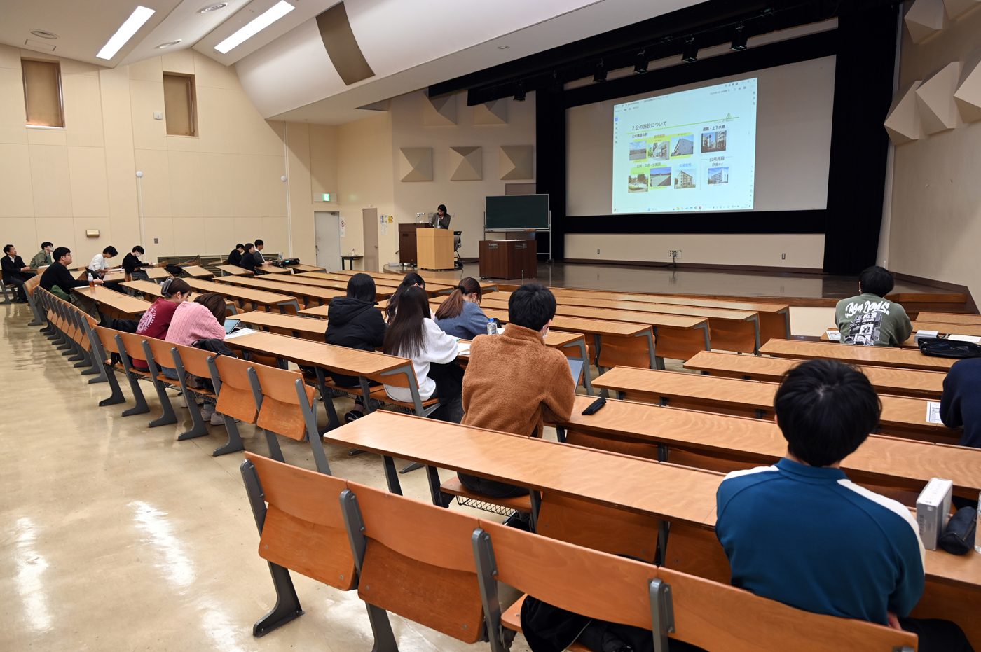 法学部法律学科では12月1日に湘南キャンパスで、本学科が開講する「地方自治法」の授業で神奈川県厚木市の職員を講師に招いた特別授業を実施しました。本授業を履修する学生ら2、3年次生77名が出席しました。