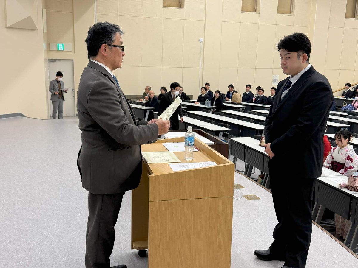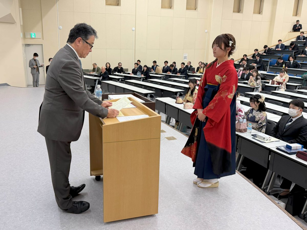 法学部では、井口紗羅さんが卒業生学位記授与総代を、石兼悠斗さんが総長賞を受賞。