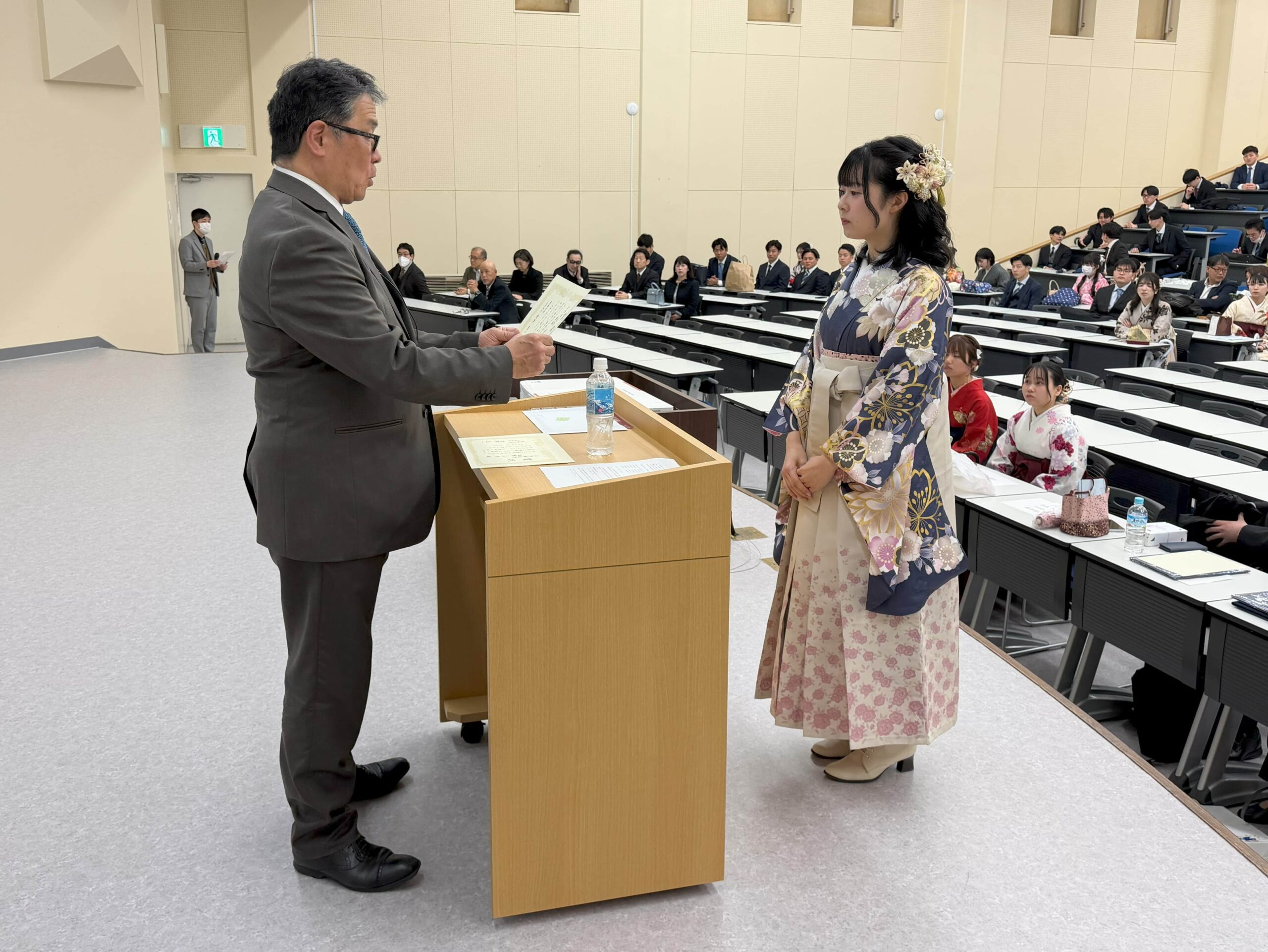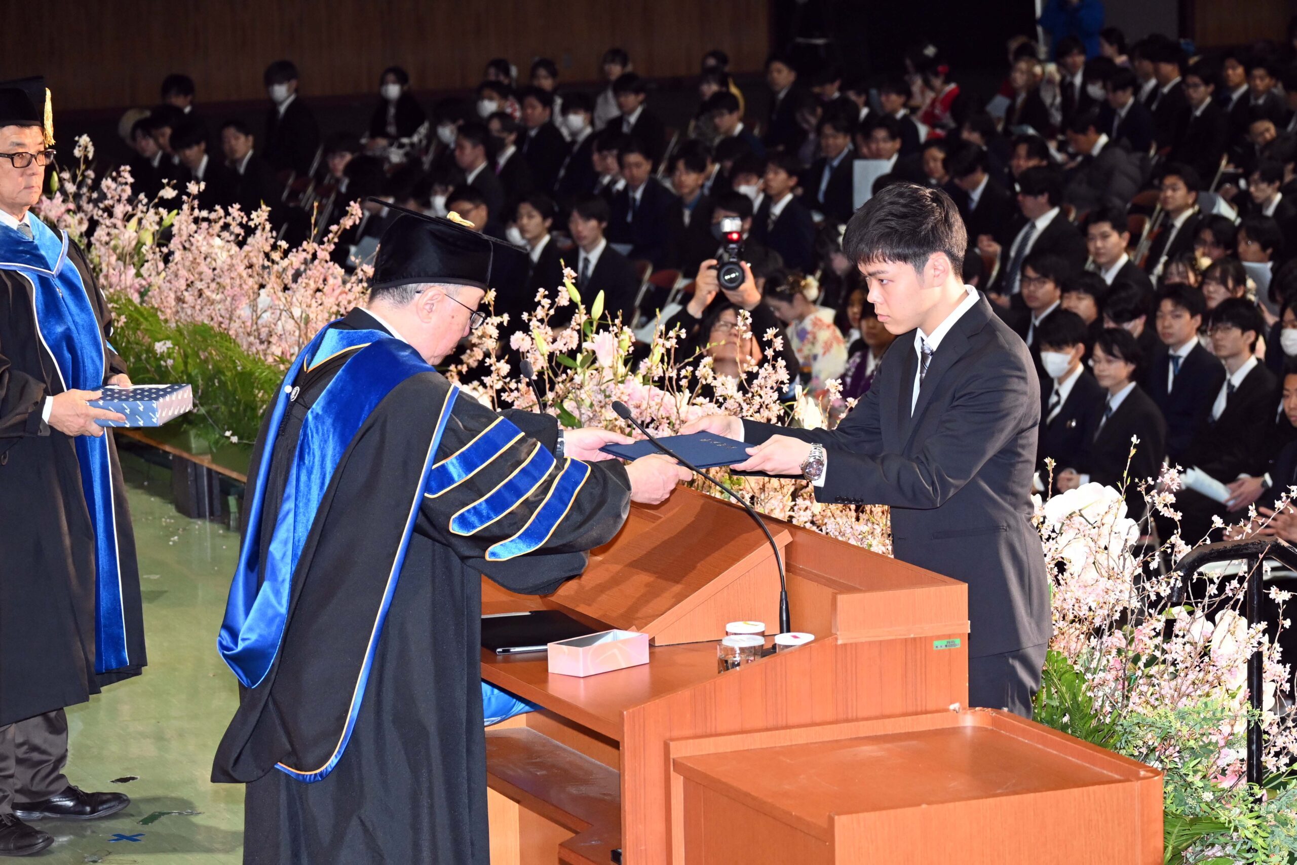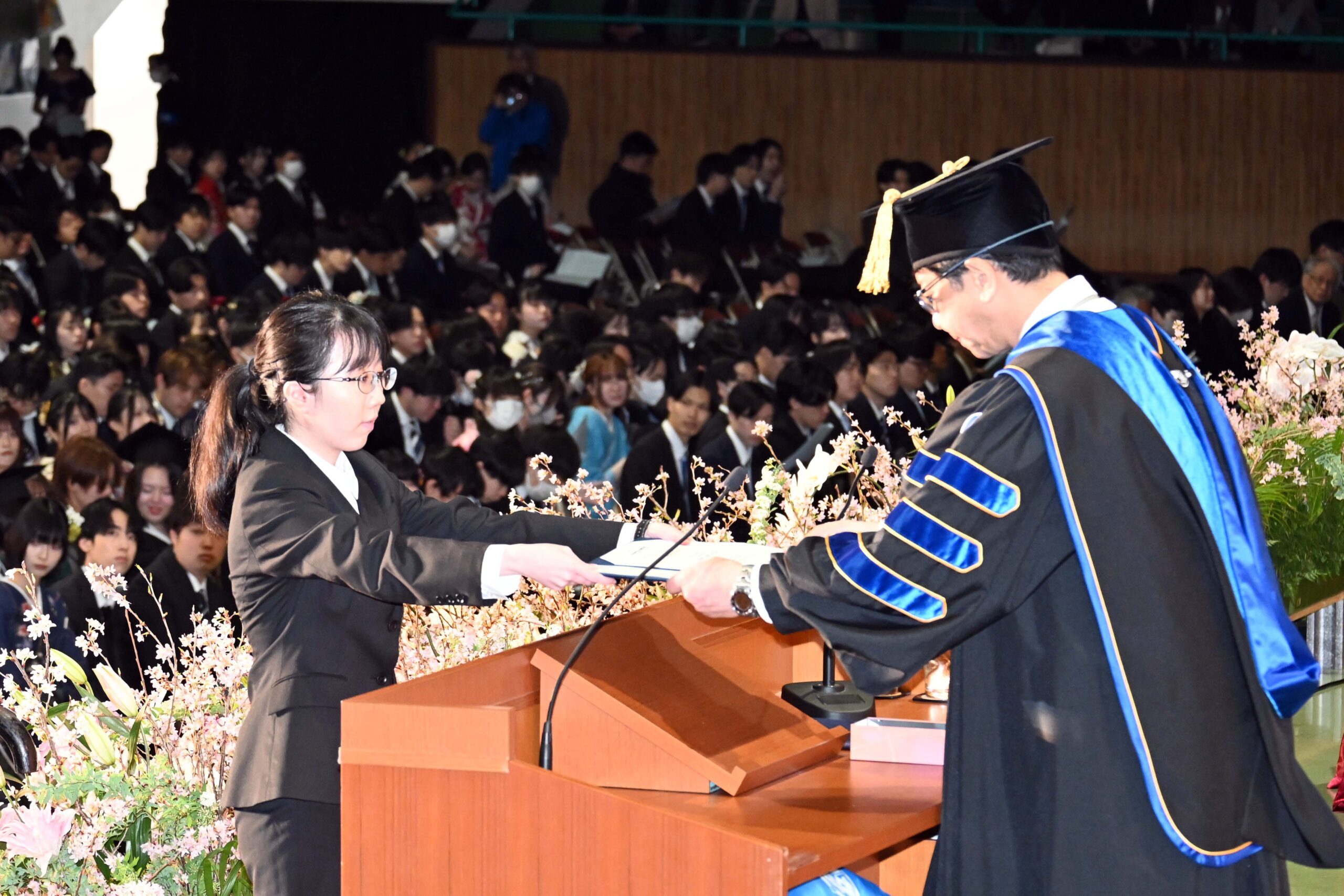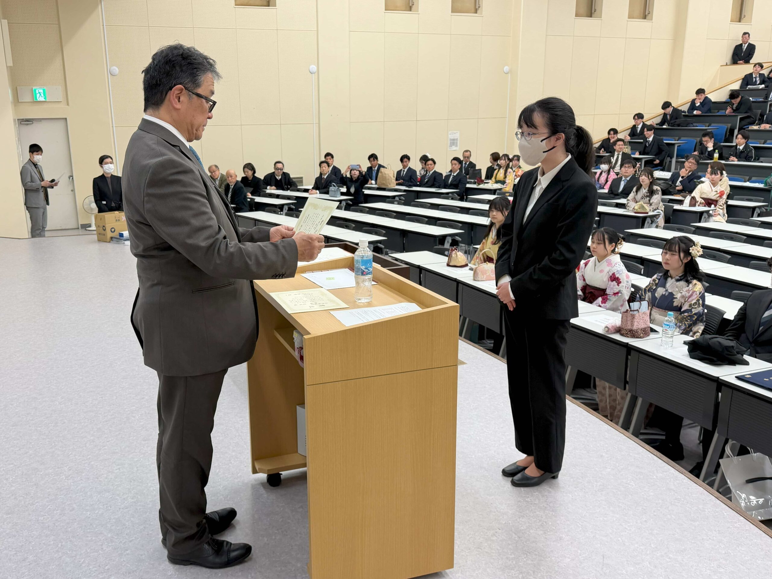 法学部では、井口紗羅さんが卒業生学位記授与総代を、石兼悠斗さんが総長賞を受賞。