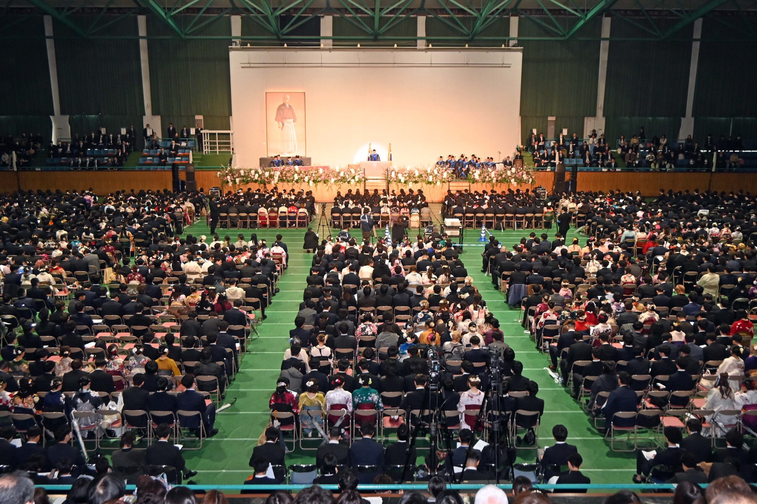 当日は湘南キャンパス総合体育館にて午後2時から法学部を含めた文系学部の学位授与式を実施し、木村英樹学長の式辞のあと、各賞授与を行いました。