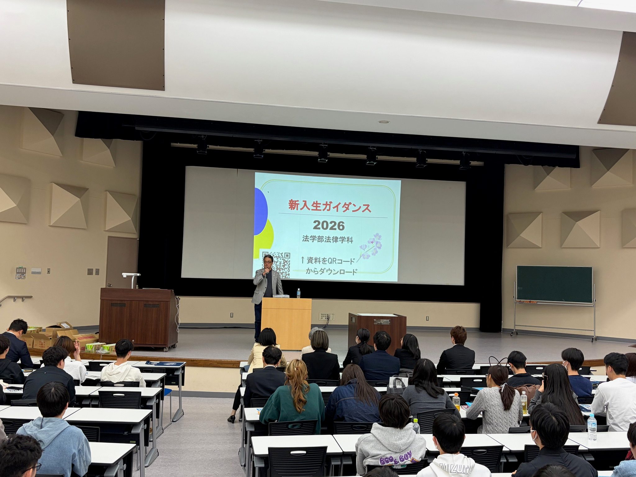 2026年4月3日、2026年度法学部新入生研修会を実施し、新入生353名が参加しました。