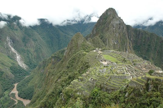 マチュピチュ遺跡は、クスコ(標高約3400m)から徒歩で3日、ウルバンバ谷の中(標高約2400m)に位置しています。1911年7月23日、イェール大学の経済学者ハイラム・ビンガムが、その前日にメルチョル・アルテアガという農民から情報を得て連れていってもらい、その姿を我々の前に顕わしました。ビンガムは、スペイン人が書き残した情報に基づき、この遺跡を「インカ最後の都」か「インカ誕生の場」と考えました。いずれの解釈も、誤りです。現在では、第9代インカ王パチャクティの親族集団(パナカ)の財産・所有地とする説が有力となっています。