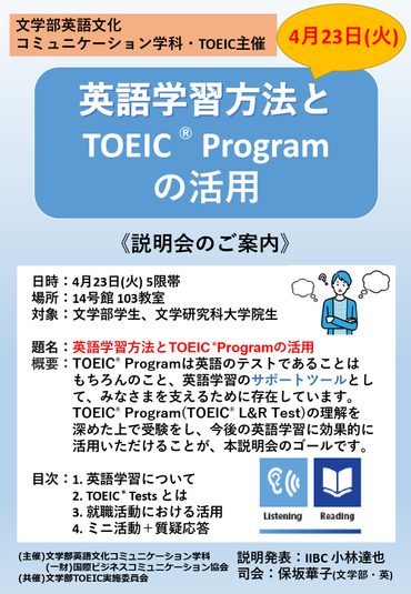 2024年度春学期 文学部向け説明会「英語学習方法とTOEIC® Programの活用」