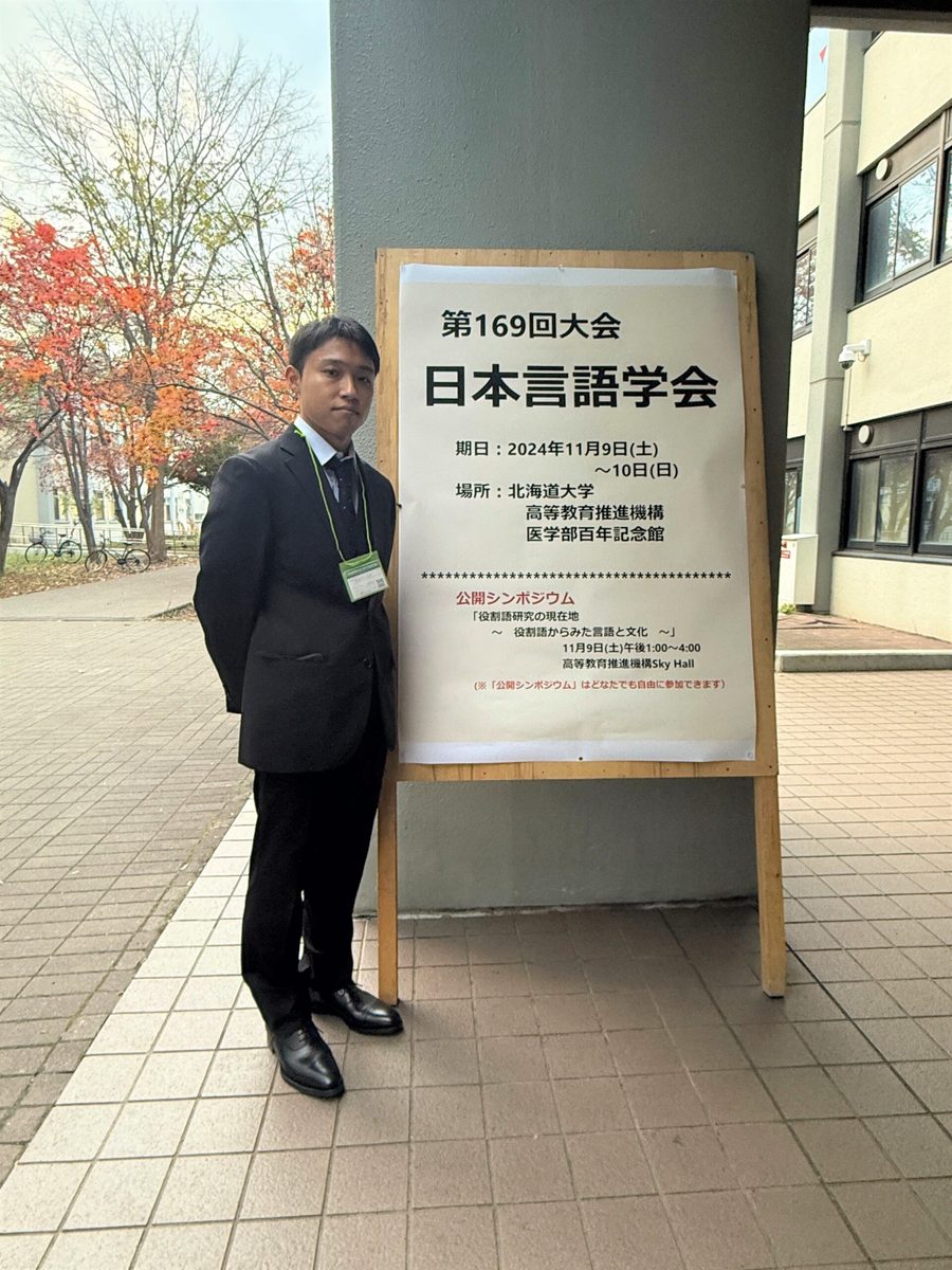 文学部英語文化コミュニケーション学科の卒業生で、現在本学大学院英文学専攻に在学中の竹内士瑛伊さんが、北海道大学で開催された日本言語学会第169回大会において、口頭での研究発表を行いました。